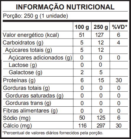 ALÉRGICOS: Não contém lactose. Contém leite e derivados. Não contém glúten.