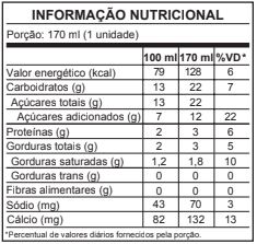 Leite pasteurizado desnatado, soro de leite pasteurizado, açúcar, mistura de ingredientes e estabilizantes